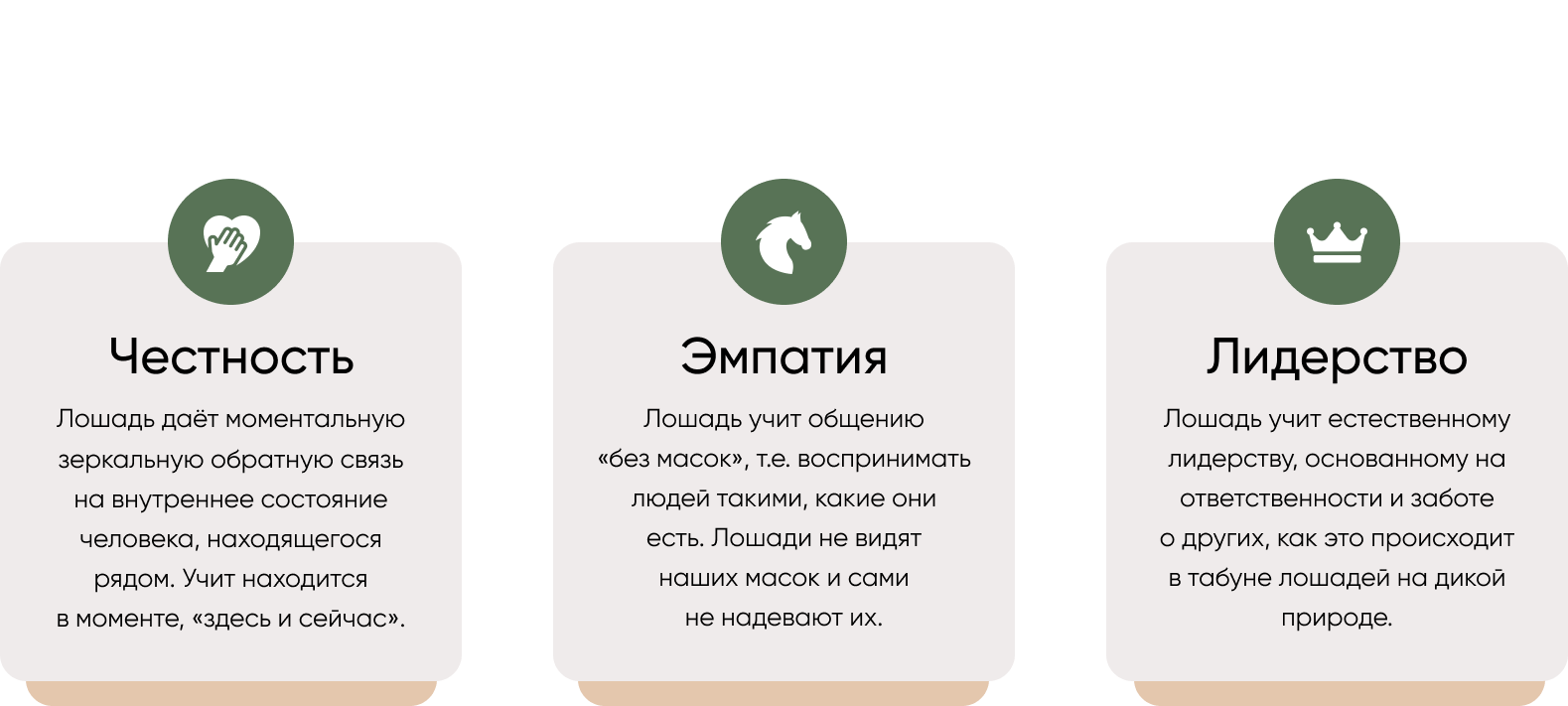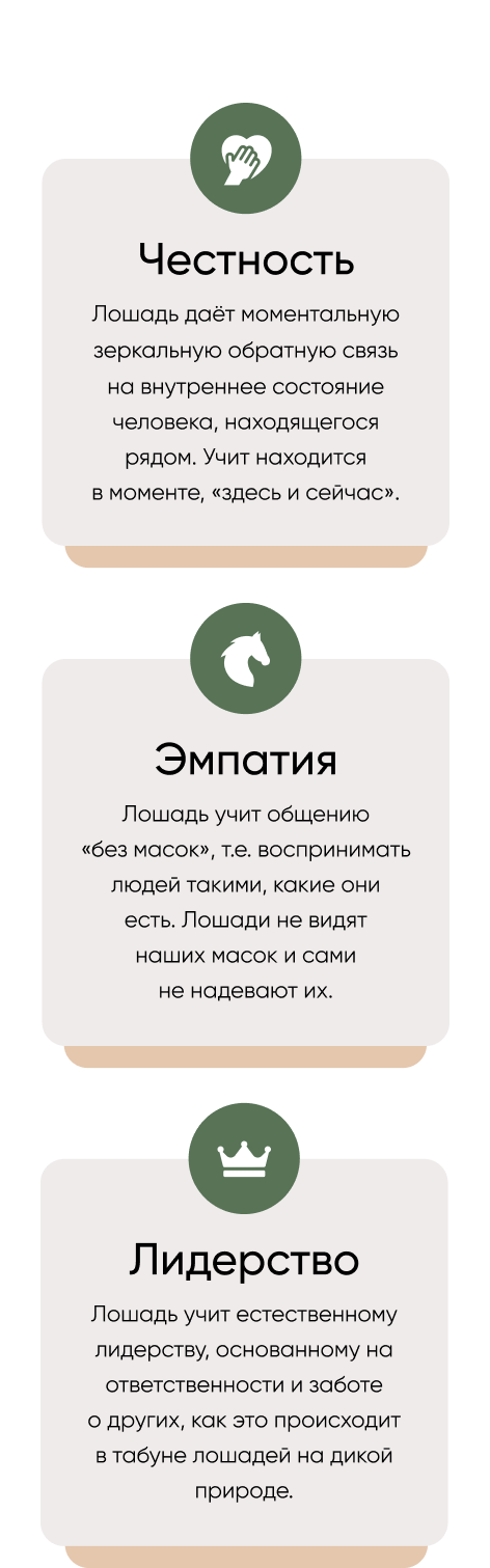 Бизнес-тренинги направлены на развитие гибких навыков (soft skills): эффективная коммуникация, эмоциональный интеллект и умение работать в команде. Практические упражнения с лошадьми дают моментальную обратную связь и помогают сотрудникам раскрыться и получить важные инсайты.